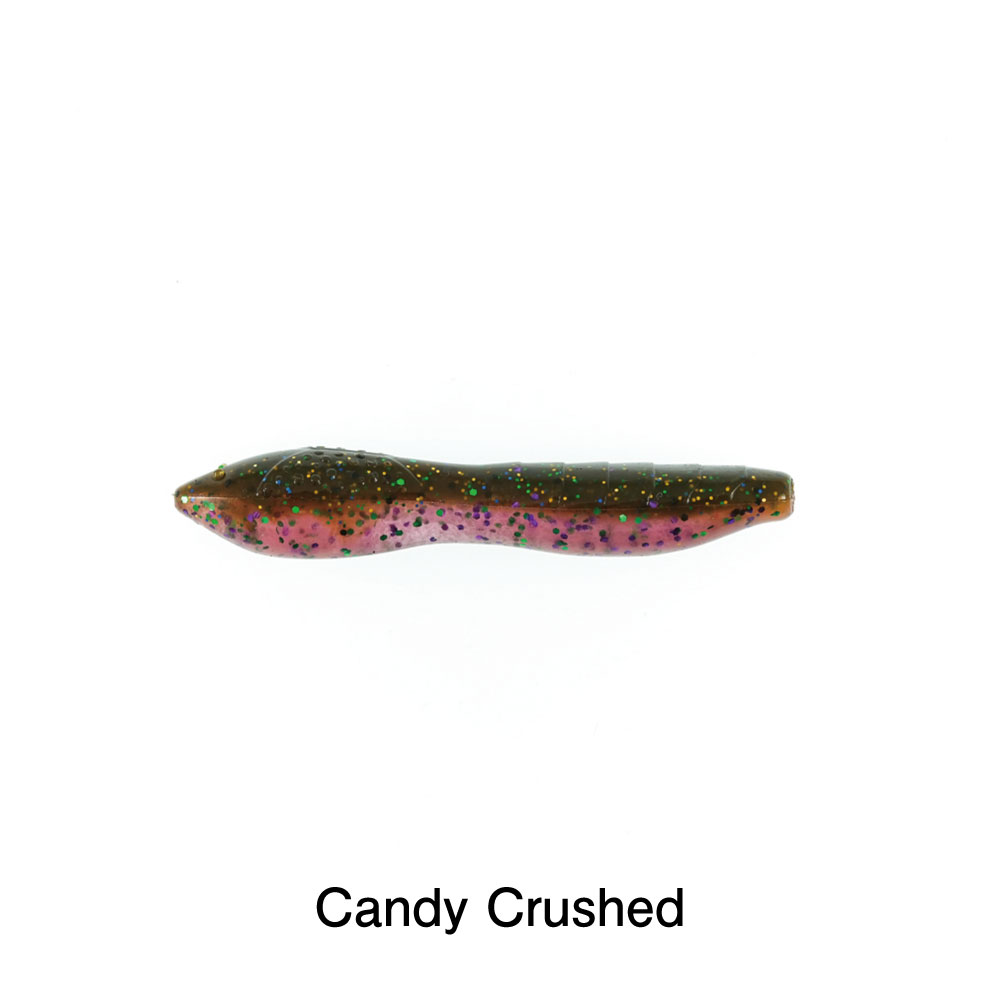 ボディの腹部にはフックセットしやすいスリットがあり、主にノーシンカーで使用され、水中で不規則にフォールしながらグライドしたり、揺れたり、時にはアングラーの反対方向に動くような独特のアクションを生み出します。