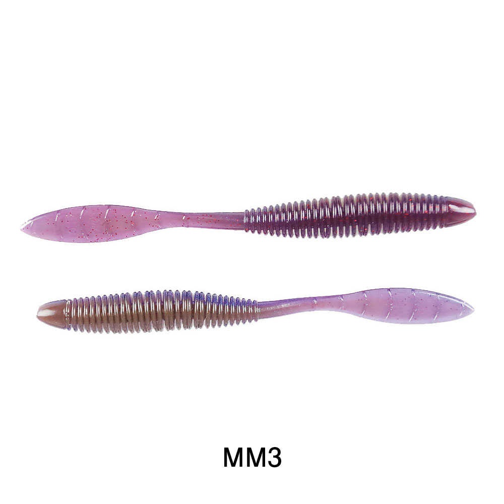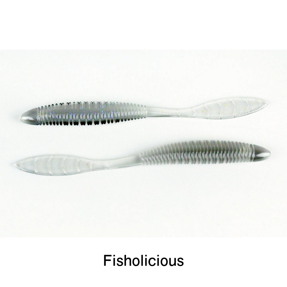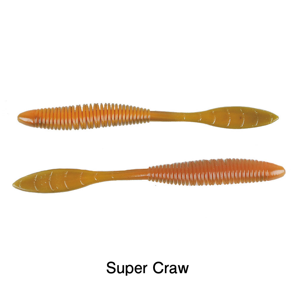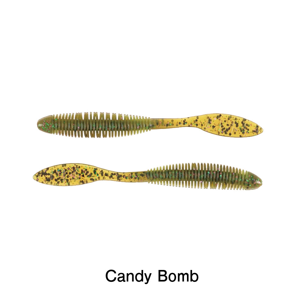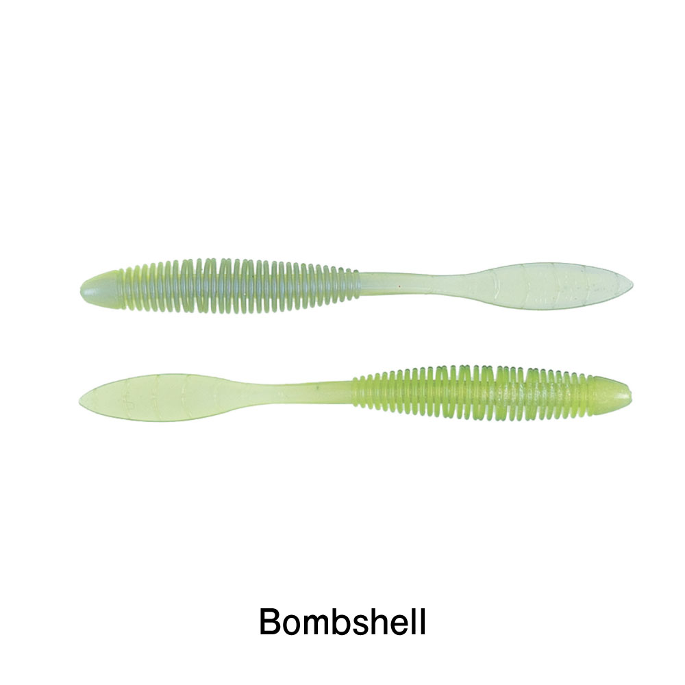 大人気のD Bombの形状をベースにしたこのワームは、ソリッドなヘッド部分により、ノーズフックにもテキサスリグにも対応可能な設計。
