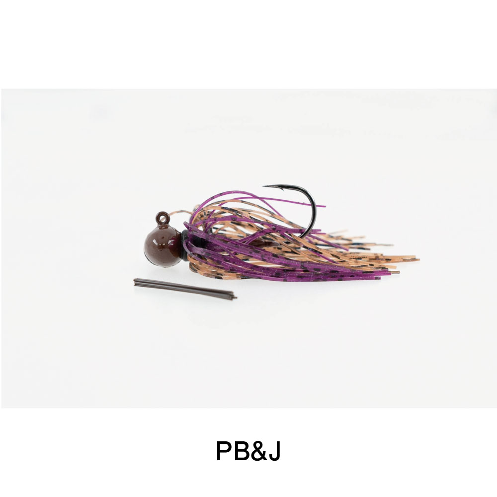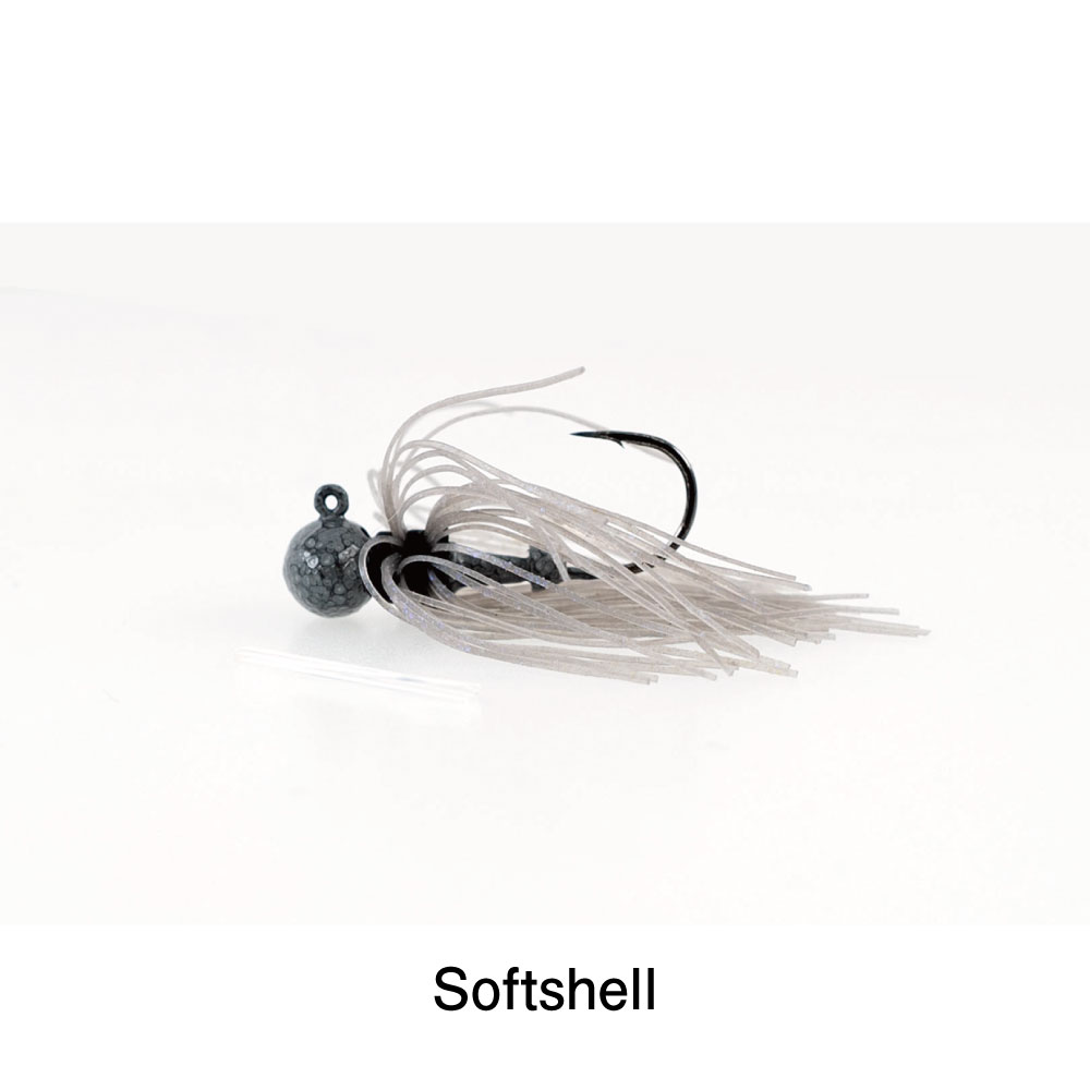 超コンパクトなボディに、Gamakatsu製の1/0フックを採用。伝統的なフットボールヘッド形状に、カスタム仕様の極細スカートを組み合わせることで、見た目もアクションも抜群の仕上がりに。